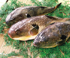 和田珍味のふぐ味醂干で使用してるふぐは九州の各産地や日本海で巻網漁やかご漁で獲られたクロサバフグやシロサバフグ、マフグなどです。仕入れは産地の仲買人が行い、厳選素材を選び抜いています。